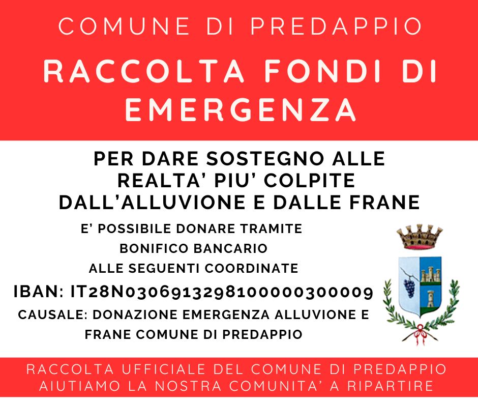 Emergenza alluvioni o frane - provvedimenti - Comune di Predappio (FC)